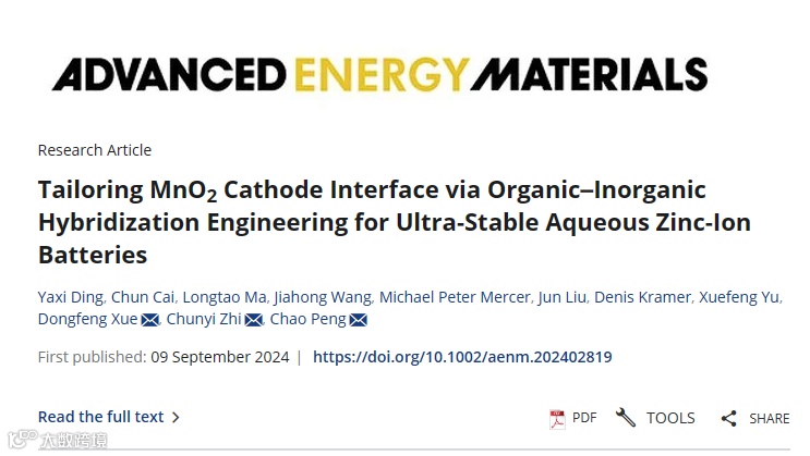 支春义教授、薛冬峰教授、彭超副研究员, Advanced Energy Materials观点:通过有机-无机杂化工程调控MnO2正极界面,实现超稳定的水系锌离子电池