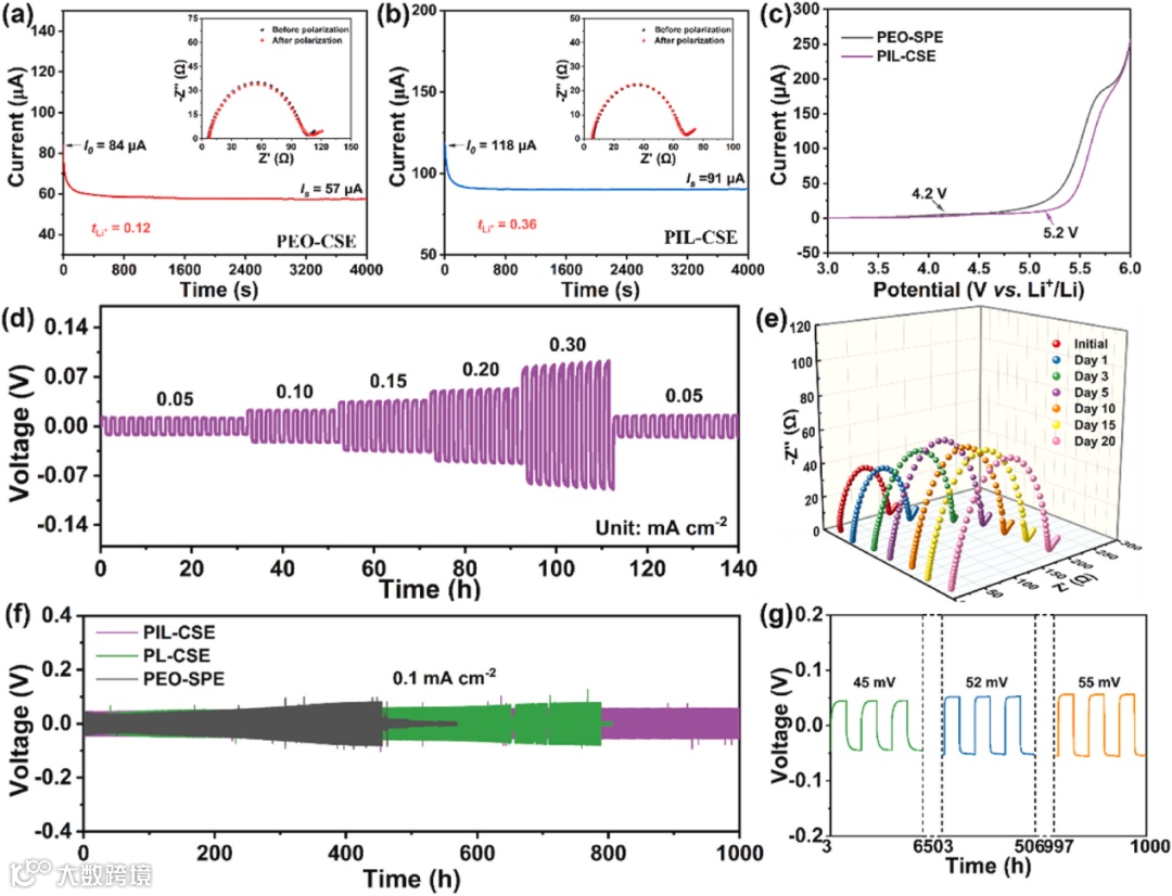 图3. PEO-SPE、PL-CSE和PIL-CSE材料的表征