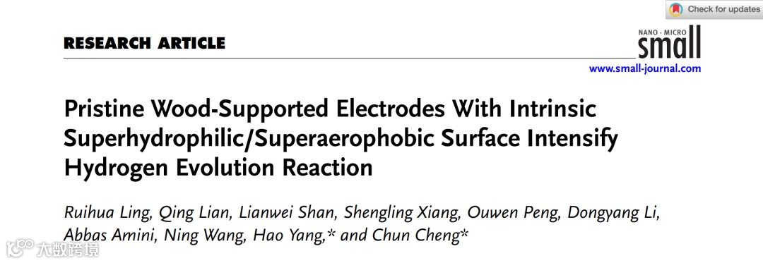 “Pristine Wood-Supported Electrodes With Intrinsic Superhydrophilic/Superaerophobic Surface Intensify Hydrogen Evolution Reaction”