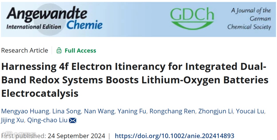 利用4f电子巡游集成双带氧化还原系统助力锂-氧电池电催化