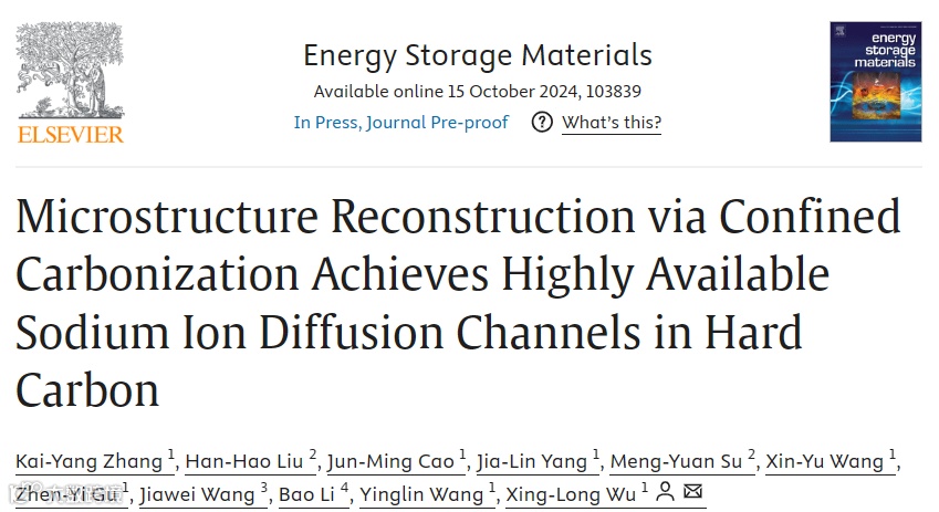 限域碳化实现微结构重构,赋予硬碳负极高效钠离子存储性能