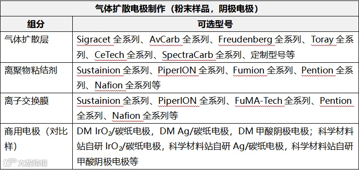 先进的测试材料,用户可任意选用当下最前沿的原材料,如制作阴极气体扩散电极