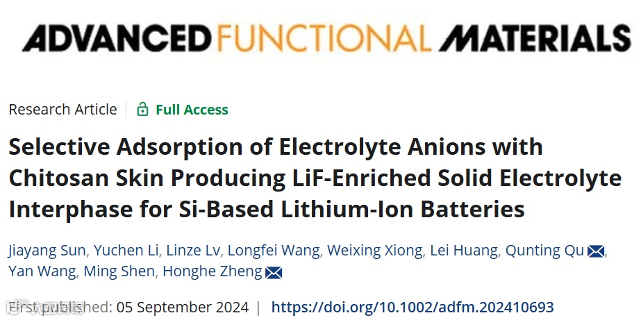 Selective Adsorption of Electrolyte Anions with Chitosan Skin Producing LiF-Enriched Solid Electrolyte Interphase for Si-Based Lithium-Ion Batteries