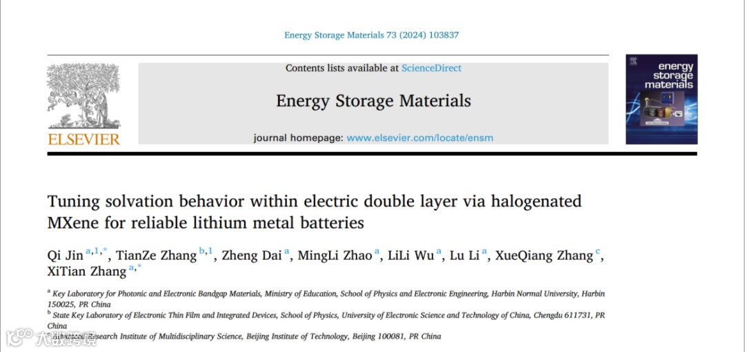 近日,来自哈尔滨师范大学张喜田教授、金奇博士与电子科技大学张天择博士合作,在国际知名期刊Energy Storage Materials上发表题为“Tuning Solvation Behavior within Electric Double Layer via Halogenated MXene for Reliable Lithium Metal Batteries”的观点文章。该观点文章分析了SEI膜中不同卤化组分与溶剂化锂离子的相互作用以及对锂电极IHP内锂离子溶剂化结构以及数量的影响规律,并研究了其对锂沉积/剥离动力学的影响。