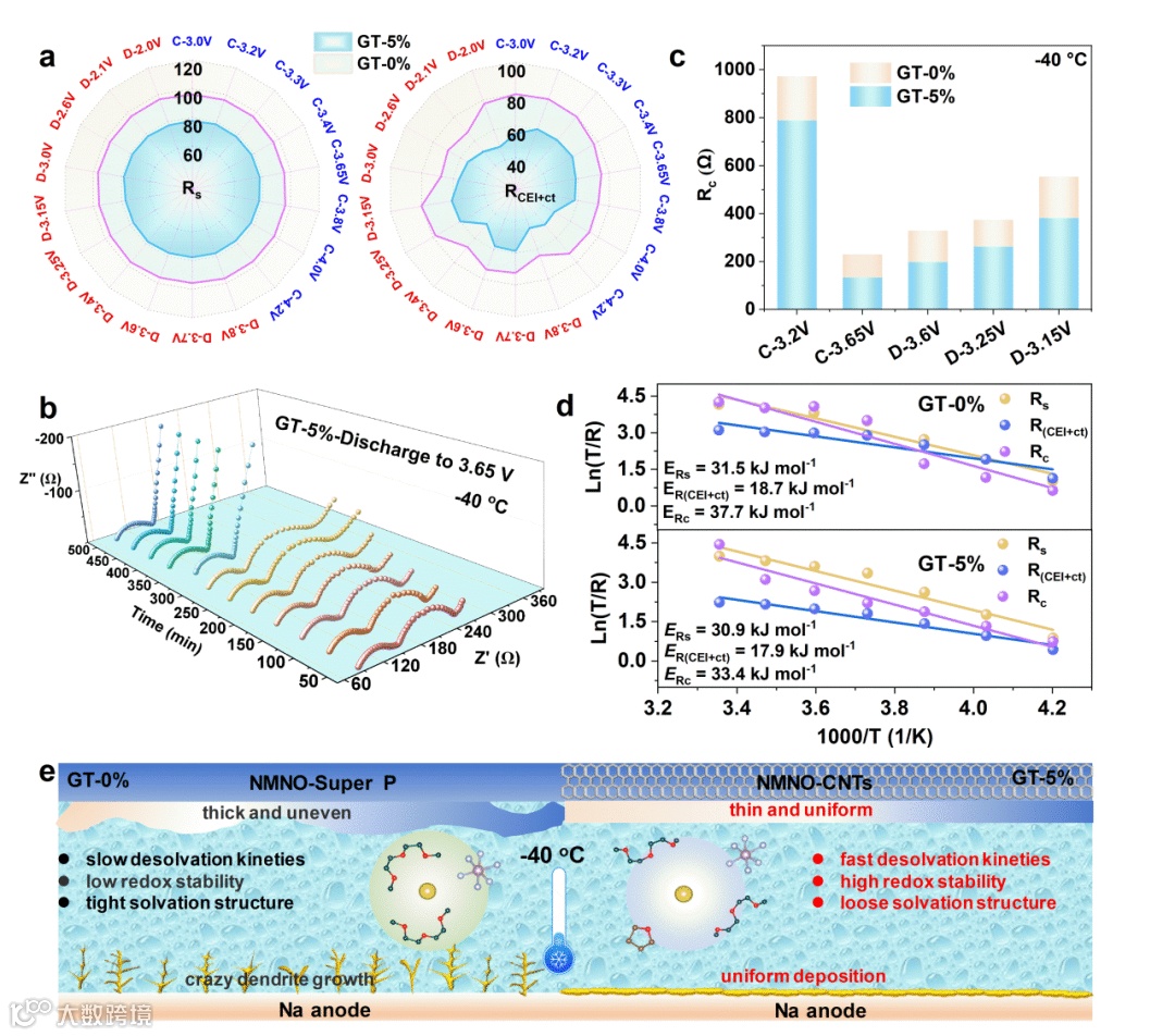 通过原位阻抗对充放电过程中的电化学过程进行监测,THF的加入显著促进了脱溶过程的动力学,提升了整个充放电过程的动力学。