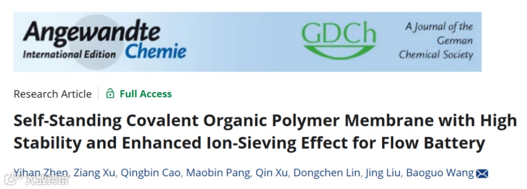 王保国教授, Angewandte Chemie International Edition:用于液流电池的高性能自支撑共价有机聚合物膜