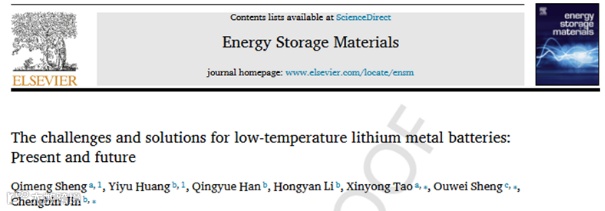 锂金属电池应用前景广阔,但目前其在低温条件下仍面临巨大挑战,这可能与低温下界面反应动力学较差、形成的固体电解质界面(SEI)膜不理想、离子传输迟缓以及不可控的锂沉积/脱出行为等有关。目前对于低温锂金属电池面临的这些挑战的认识和探索还有待进一步深入。