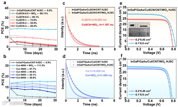 要点三:CNT/GaAs优异的效率和高稳定性