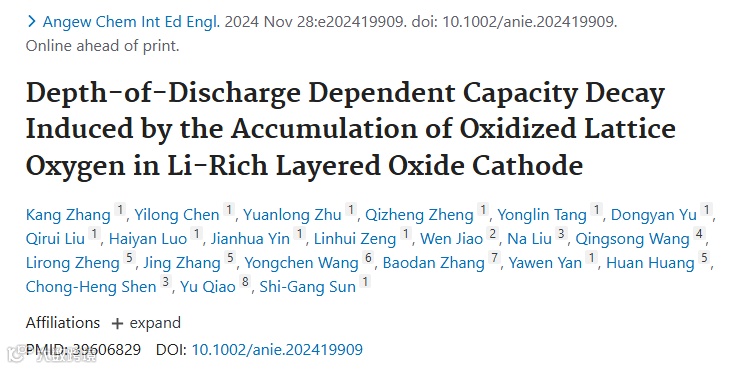 Depth-of-Discharge Dependent Capacity Decay Induced by the Accumulation of Oxidized Lattice Oxygen in Li-Rich Layered Oxide Cathode.