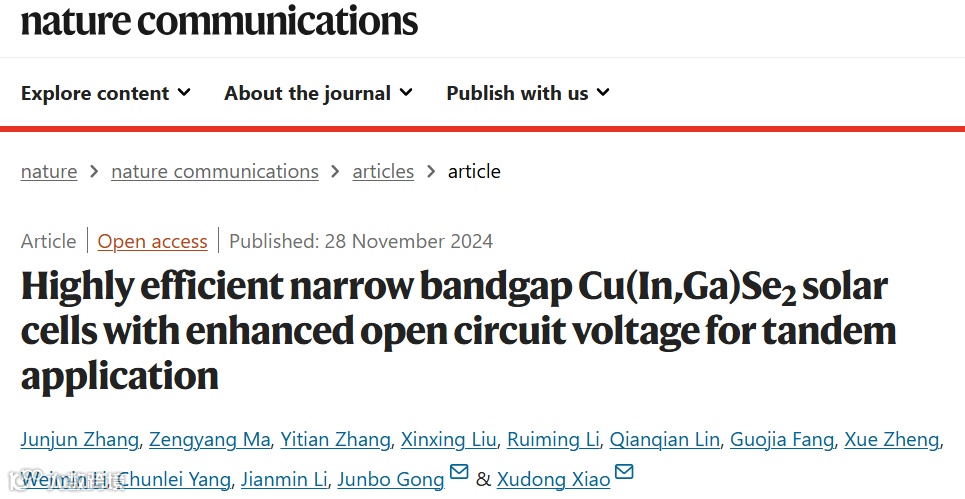 基于此,来自武汉大学的肖旭东教授和宫俊波副研究员,在国际知名期刊Nature Communications上发表题为“Highly efficient narrow bandgap Cu(In,Ga)Se2 solar cells with enhanced open circuit voltage for tandem application”的文章。