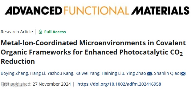 COFs中金属离子配位微环境对光催化CO2还原的影响