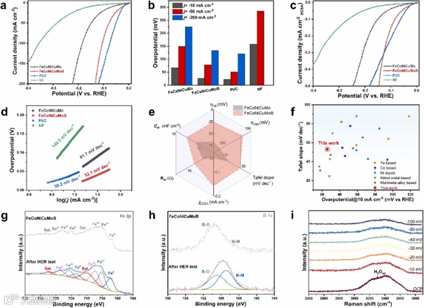 图3. FeCoNiCuMoB薄膜的HER性能评估