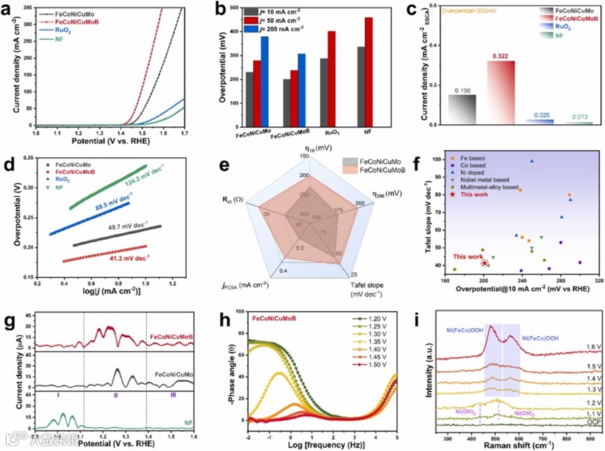 图4. FeCoNiCuMoB薄膜的OER性能评估