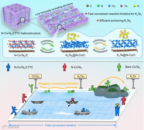 图1. N-CoTe2/LTTC的结构设计图以及加速多碲化物转化示意图。