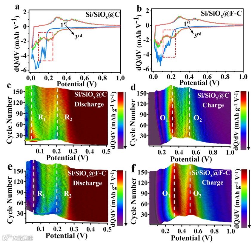 图5. Si/SiOx@F-C和Si/SiOx@C的dQ/dV曲线