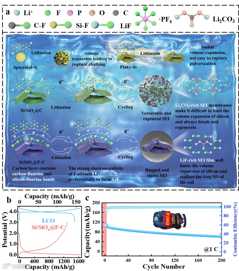 氟掺碳改性Si/SiOx有效实现高性能锂电池负极