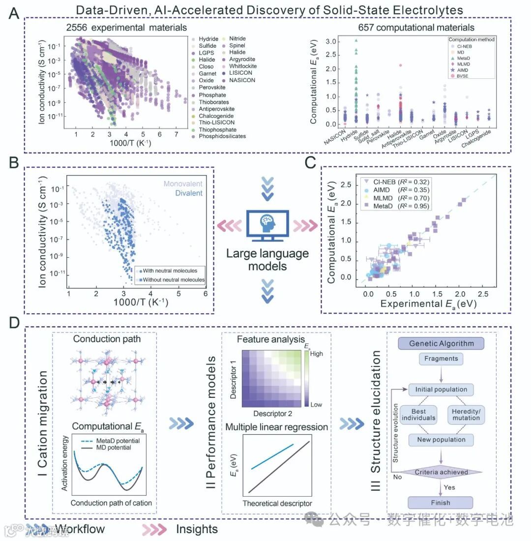 ✅ 首次引入大语言模型(LLM)驱动材料结构-性能建模,系统性分析数据库里2556种实验材料+18635组电导率测量值,揭示“中性分子协同迁移”机制;