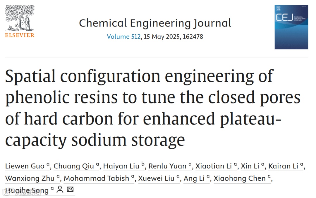 基于此,来自北京化工大学的宋怀河教授,在国际知名期刊Chemical Engineering Journal上发表题为“Spatial configuration engineering of phenolic resins to tune the closed pores of hard carbon for enhanced plateau-capacity sodium storage”的观点文章。该观点文章分析了醛分子侧基空间构型调控的策略。