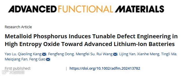 中国计量大学康巧玲/南京大学高峰 AFM:类金属磷在高熵氧化物中诱导可调谐缺陷工程助力先进的锂离子电池
