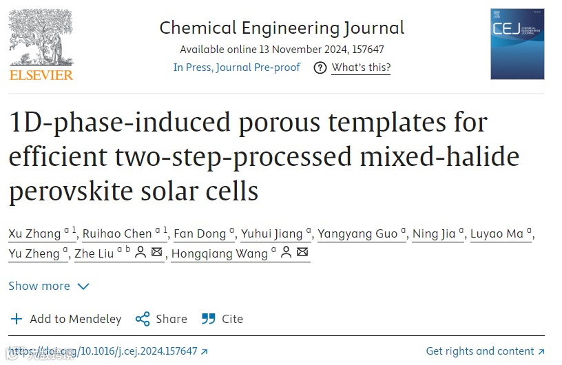 一维相诱导的多孔模板用于两步法制备高效混合卤素钙钛矿太阳能电池