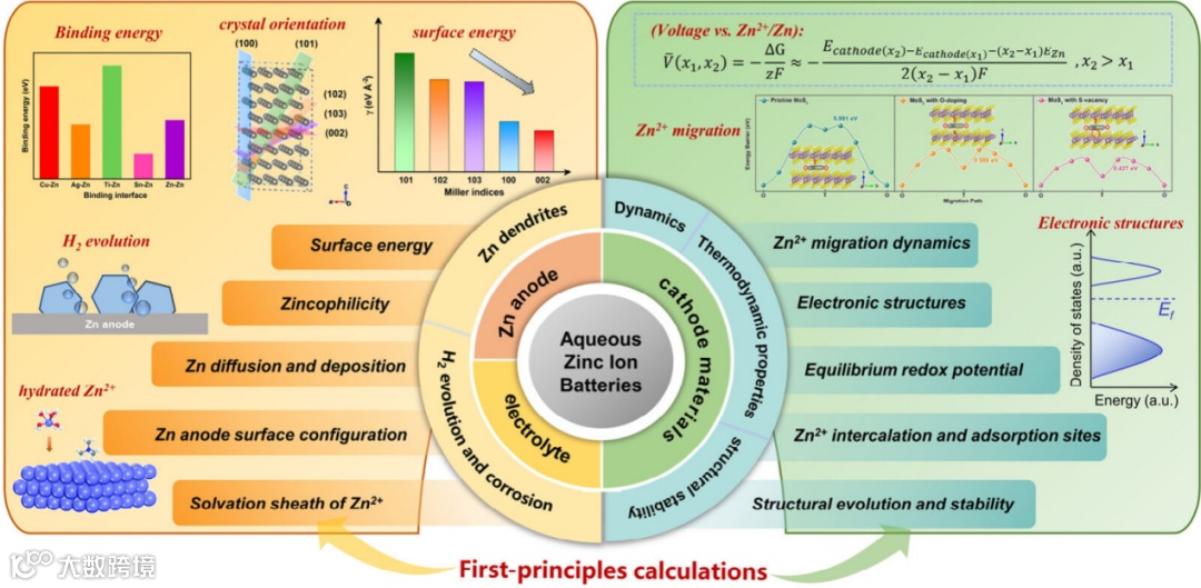 图1. 第一性原理计算在揭示水系锌离子电池失效机理研究中的应用。