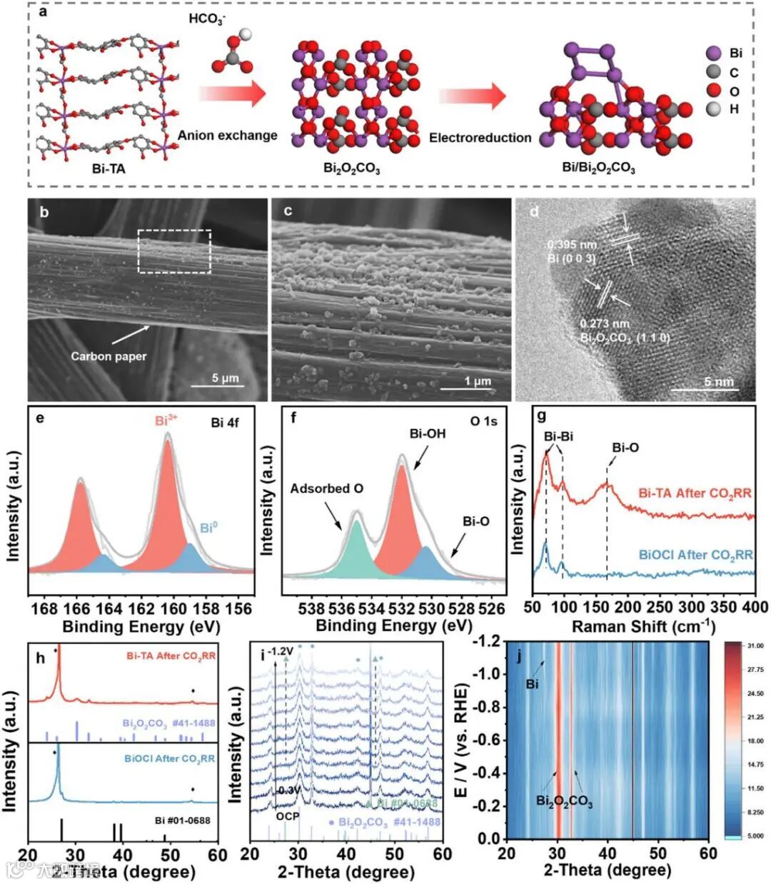 原位形成的Bi/Bi2O2CO3用于高效电催化CO2RR制甲酸