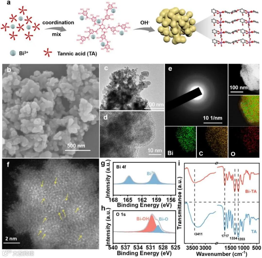 要点一:简单室温条件下水相自组装制备的Bi-TA复合纳米结构催化剂的结构表征