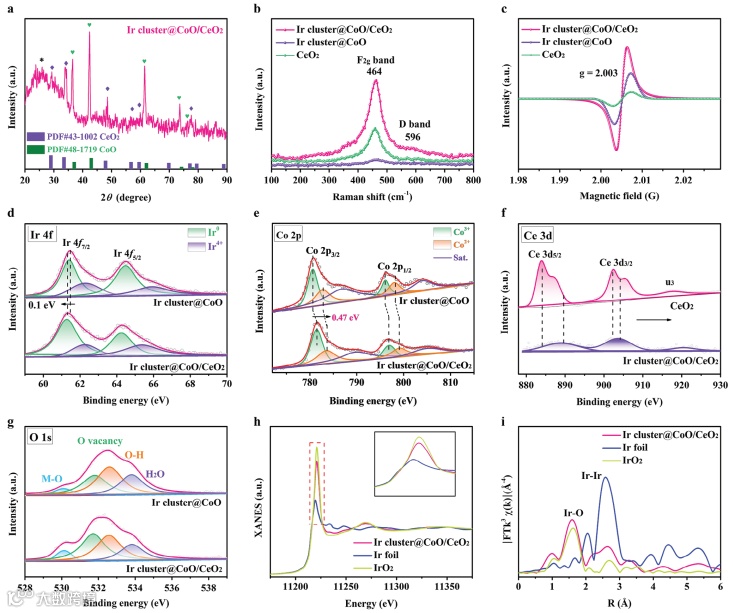 图3. Ir cluster@CoO/CeO2的结构表征。