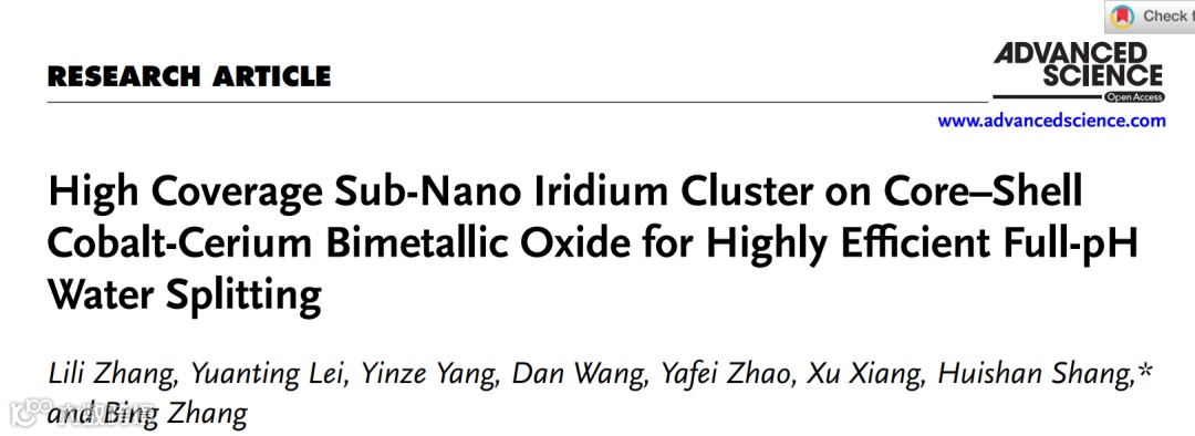 近日,来自郑州大学的尚会姗研究员和张冰教授,在国际知名期刊《Advanced Science》上发表题为《High coverage sub-nano iridium cluster on core–shell cobalt-cerium bimetallic oxide for highly efficient full-pH water splitting》的文章。该文章深入解析了原子精确的亚纳米Ir团簇锚定在双金属核壳氧化物上对电化学析氢/析氧反应的作用机理。讨论了电子结构和形貌工程在实现广泛pH范围内稳定的电解水反应的作用机理。