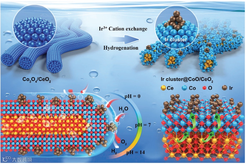 在核壳钴铈双金属氧化物上的高覆盖亚度纳米铱团簇用于高效全pH水分解
