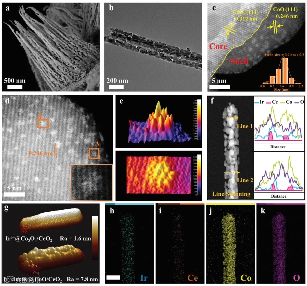 图2. Ir cluster@CoO/CeO2的形貌表征。