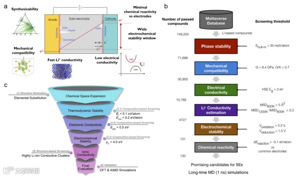 图4. 筛选和设计高性能锂离子电池固态电解质材料需要关注的材料特性。