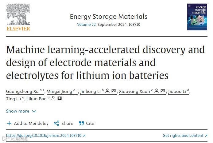 机器学习加速锂离子电池电极材料和电解质的发现与设计