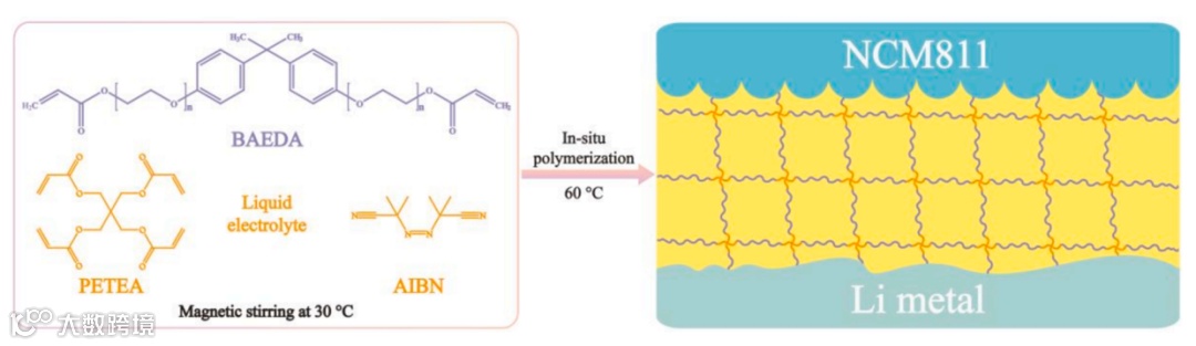 图1. BAEDA-PETEA-LE-PAN电解质的制备流程示意图