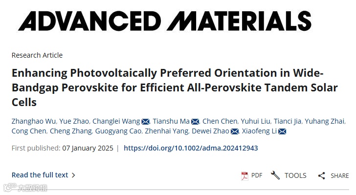 增强宽带隙钙钛矿中的光伏择优取向以实现高效的全钙钛矿叠层太阳能电池