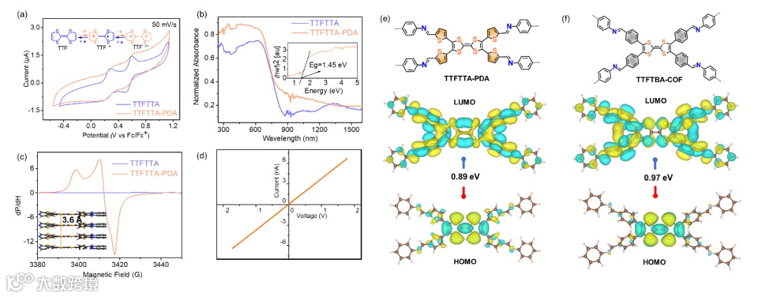图3. TTFTTA-PDA COF电学性质表征。