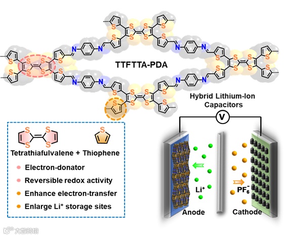 电活性四硫富瓦烯噻吩基COF材料用于高性能杂化锂离子电容器负极