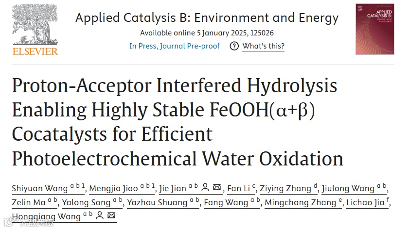 西北工业大学王洪强教授团队Appl.Catal.B Environ:质子受体干预水解策略制备高稳定FeOOH(α+β)催化剂助力高效光电化学水氧化