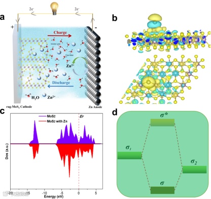 吉林大学张伟教授、郑伟涛教授团队联合西安工业大学潘洪革教授团队、澳洲新南威尔士大学碳材料中心夏振海教授团队,在“Acta Materialia”在线发表论文“Highly-pseudocapacitive Origin and Design Principles of MoS2 for High-performance Aqueous Zinc-Ion Storage”。通过理论计算指导和实验验证相结合的方法,在原子和电子水平上系统地阐明了高赝电容贡献的潜在物理根源,解锁了赝电容类电极材料存储锌离子的设计原则,合理地设计了一种具有锌离子存储能力的MoS2正极材料,在 0.05 A g-1的低电流密度下,经过150圈循环后,仍可以保持~100%的容量保持率。