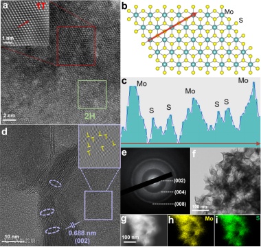 使用简单的溶剂热法利用乙醇作为弱还原剂合成了破布结构的MoS2(rag-MoS2),通过Raman,XPS,EELS,AC-HAADF-STEM等表征手段验证该结构不仅具有弱结晶性,且其金属相占比约69.48%。