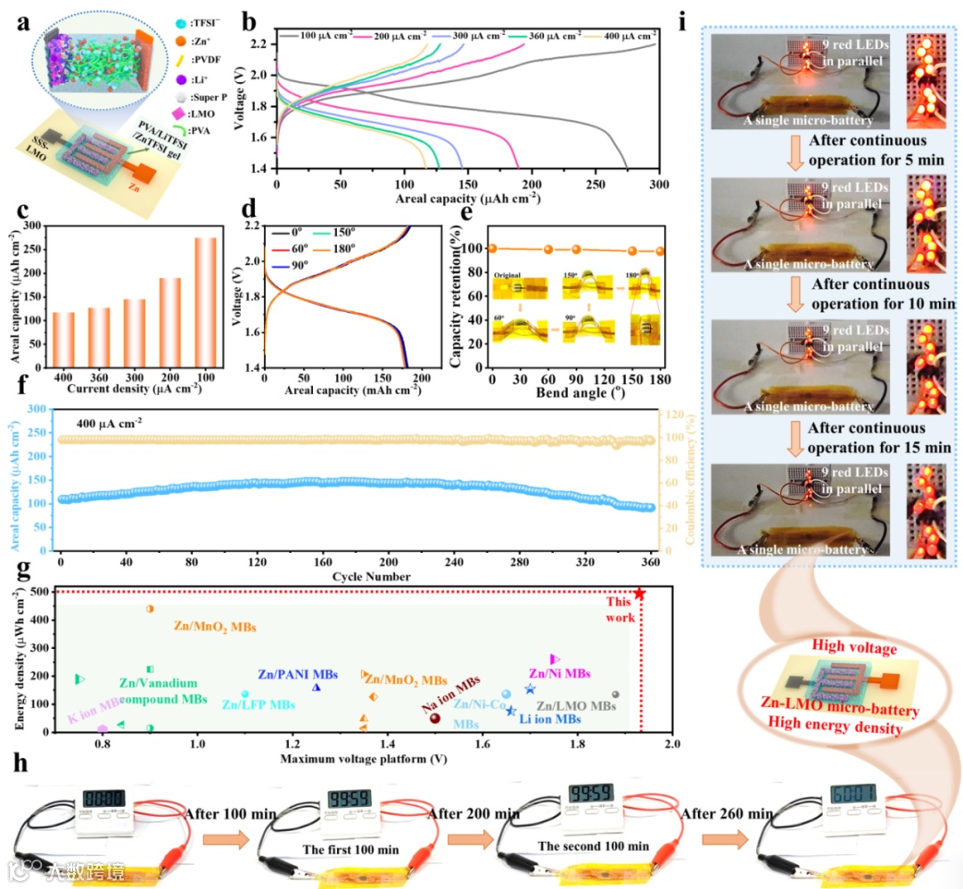 图6. 微电池的电化学性能测试及应用