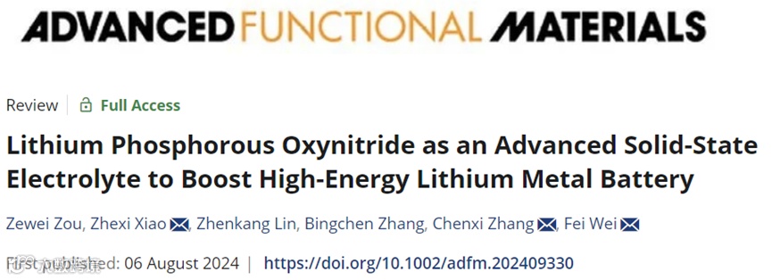 近日,来自清华大学魏飞教授-张晨曦副研究员团队,在国际知名期刊Advanced Functional Materials上发表题为“Lithium Phosphorous Oxynitride as an advanced solid-state electrolyte to boost highenergy lithium metal battery”的综述文章。该综述文章详细探讨了无定形结构LiPON的特性、体相离子扩散和电极/电解质界面的基础理解,并重点介绍了提升电化学性能的改进策略。随后,总结了创新的表征和计算方法用于揭示LiPON的设计原则。此外,分析了实现LiPON高效制备的方法,并探讨了LiPON在当前电池体系中的应用现状。最后,对与LiPON相关的基础理解、结构和界面设计的合理预测、高效制备的剩余挑战以及未来应用的潜在机会进行了适当的展望。鄂尔多斯实验室将继续致力于突破固态电解质技术瓶颈,为下一代高安全、高能量密度电池体系研发提供重要支持。