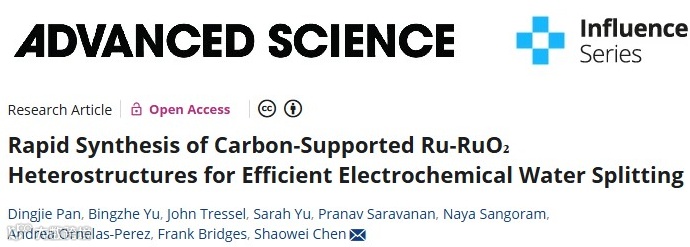 近日,来自加州大学圣克鲁兹分校的陈少伟教授团队,在国际知名期刊Advanced Science上发表题为“Rapid Synthesis of Carbon-Supported Ru-RuO₂ Heterostructures for Efficient Electrochemical Water Splitting”的文章。本研究利用Ru(acac)3作为单一前驱体,通过高频磁感应加热(MIH)方法快速制备了碳负载的Ru-RuO₂异质结构催化剂(Ru-RuO₂/C),展示了其在电解水析氢(HER)和析氧(OER)中的优异双功能催化性能。与传统方法相比,MIH技术显著缩短了合成时间(仅需10秒),同时提高了原料利用率,降低了成本。在碱性介质中,制备的Ru-RuO₂/C-300A样品展现出卓越的催化性能,达到10 mA cm⁻²电流密度时,HER和OER的过电位分别为−31 mV和+240 mV。此外,在全水解实验中,作为双功能催化剂的Ru-RuO₂/C-300A在达到10 mA cm⁻²的电流密度时仅需1.43 V的超低电池电压,比商业20% Pt/C和RuO₂/C混合物低160 mV。这些结果突显了磁感应加热(MIH)技术在快速合成高性能催化剂方面的巨大潜力,为电化学水分解和基于海水的可持续氢气生产提供了新的可能性。