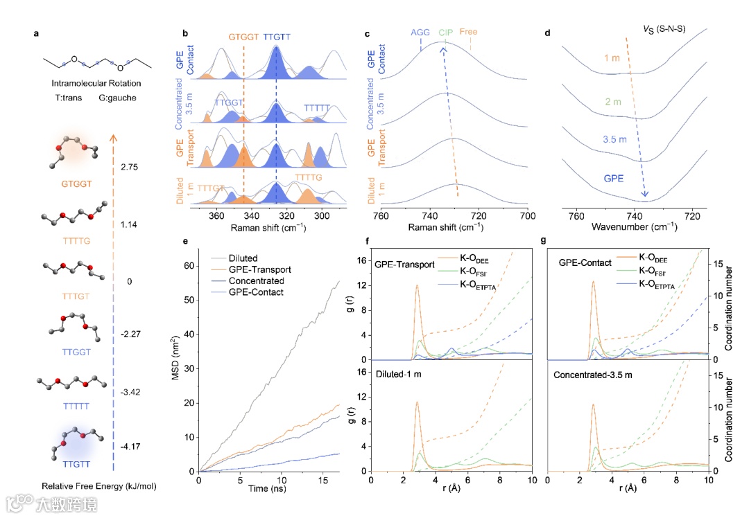 图2. 聚合物电解质的溶剂化结构分析