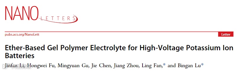 湖南大学樊令、鲁兵安 Nano Letters:醚基凝胶聚合物电解质助力高压钾离子电池