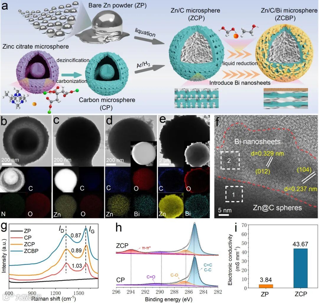 3,铋金属的包覆抑制了锌金属/电解液界面的析氢反应,限域且交联的碳球可以在锌金属电镀/剥离过程中保持结构稳定,从而有效地抑制了锌粉的电接触损失。