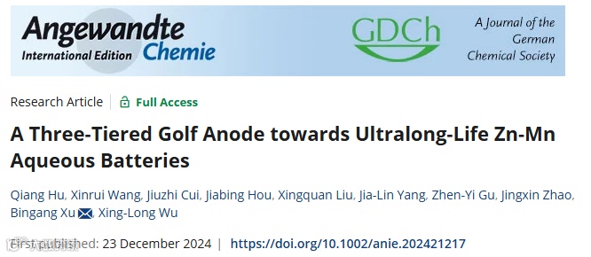 Qiang Hu, Xinrui Wang, Jiuzhi Cui, Jiabing Hou, Xingquan Liu,* Jia-Lin Yang, Zhen-Yi Gu, Jingxin Zhao,* Bingang Xu,* and Xing-Long Wu*, A Three-Tiered Golf Anode towards Ultralong-Life Zn-Mn Aqueous Batteries