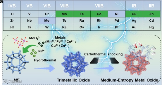 图1. 中熵金属氧化物电催化剂合成示意图。