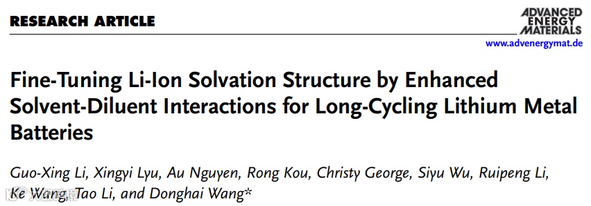 通过增强溶剂-稀释剂相互作用精细调控锂离子溶剂化结构,实现长循环锂金属电池