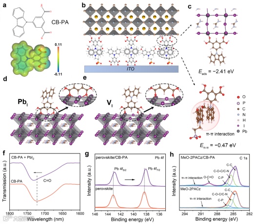 2 CB-PA通过咔唑基团与MeO-2PACz形成π-π堆积,并通过双C═O···Pb键与钙钛矿螯合,从而构建桥接界面,促进载流子提取。